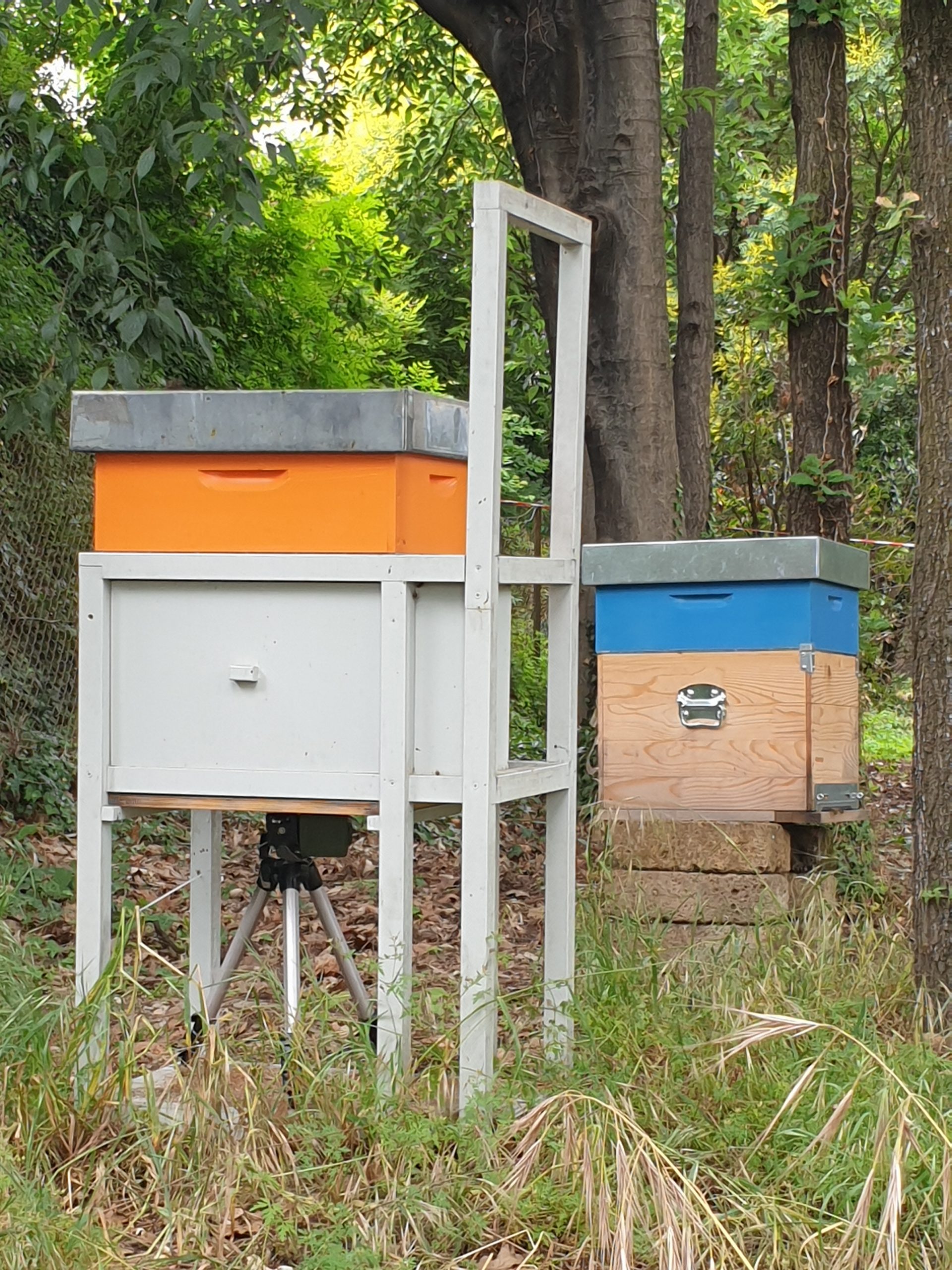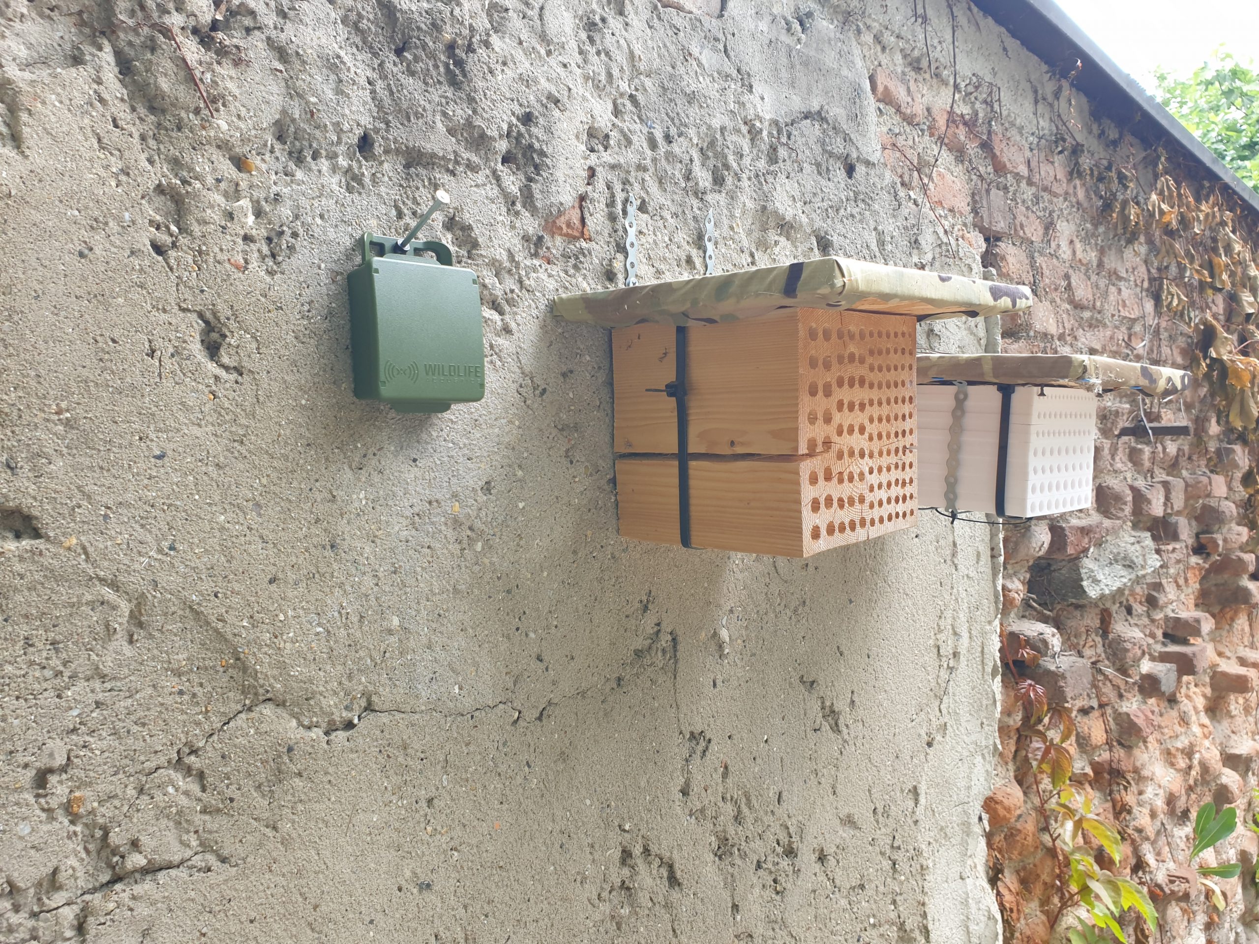 - two recorders to detect bees’ activity (one located near a hive of domestic bees and one close to nesting boxes for wild bees).