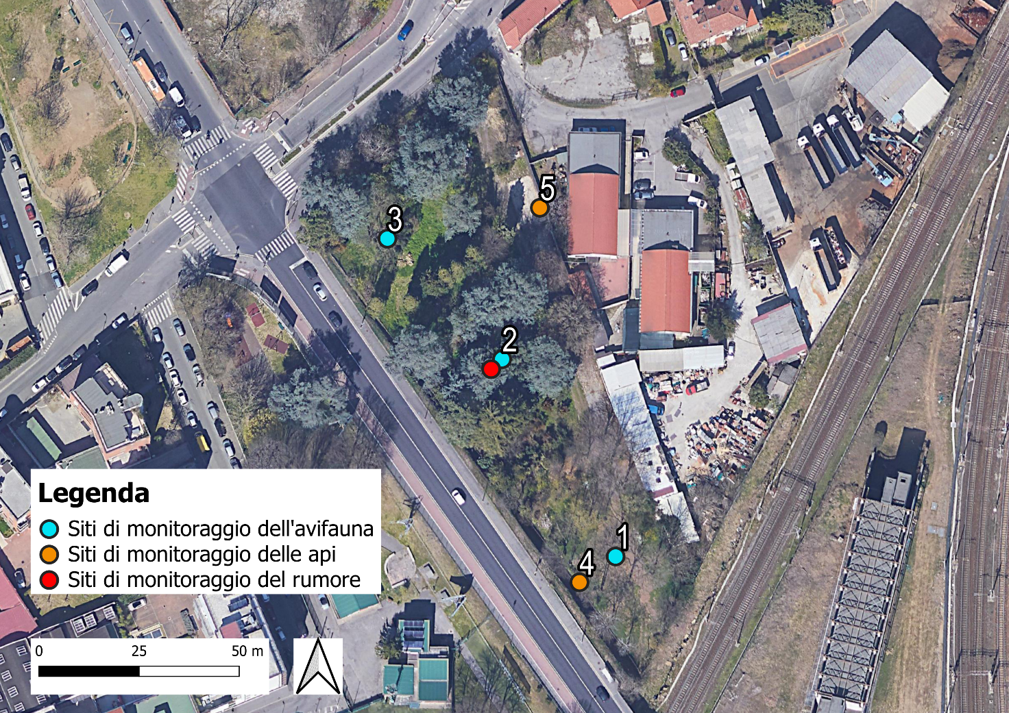 The Vivaio Bicocca is a green area located in a highly anthropized urban context in Milan with many noise sources (roads, railways, manufacturing activities). For these reasons, it is suitable for noise pollution and soundscape research activities to be done through long and short monitoring campaigns.