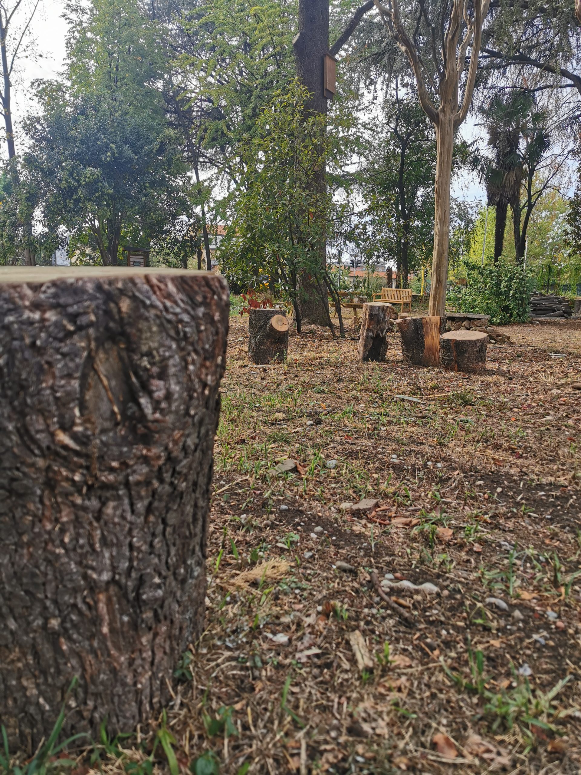 Il Vivaio ha riutilizzato la maggior parte del legno di risulta dei lavori di abbattimento per la creazione di cataste di legna, luoghi di nidificazione e riparo per piccoli animali e organismi saproxilici, oltre che per l’installazione di nuove sedute in legno, già apprezzate e utilizzate nelle attività di insegnamento.